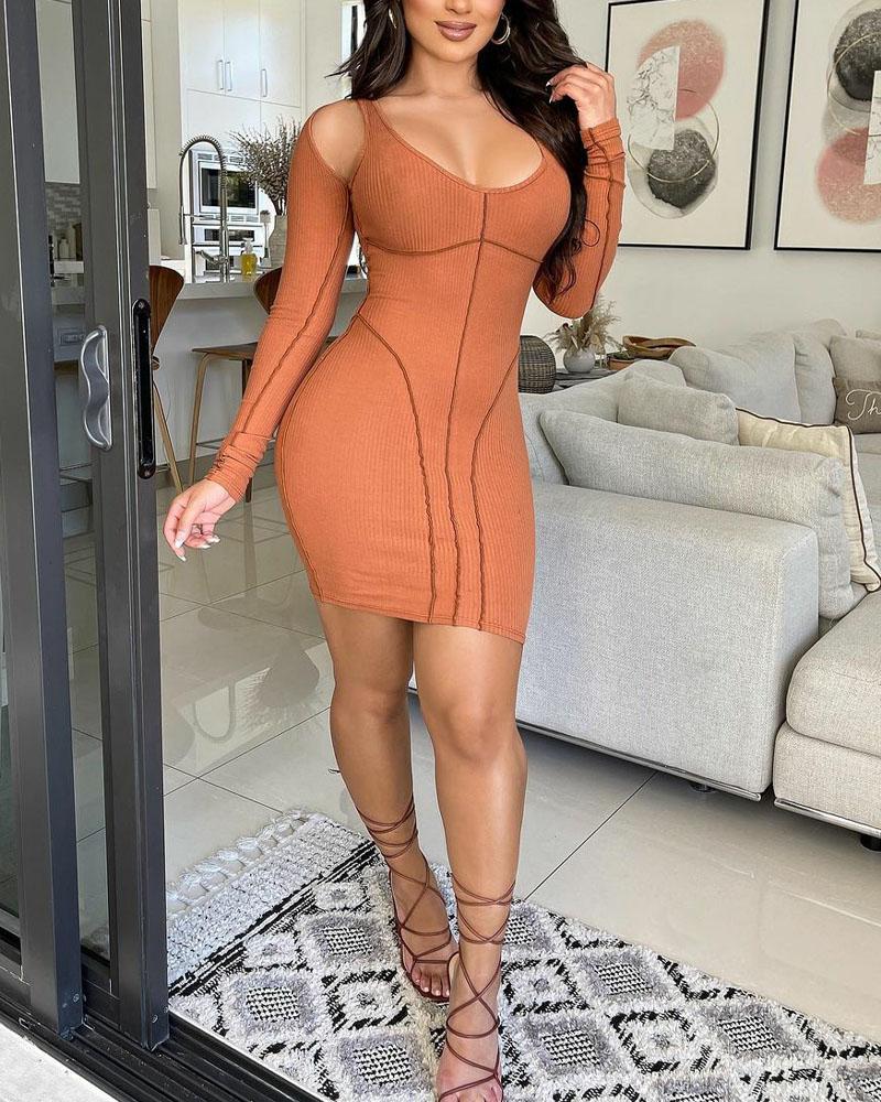 Cold Shoulder Contrast Stitch Bodycon Dress