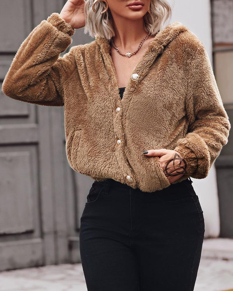 Style:Chic Type:Teddy Material:97%Polyester,3%Spandex Neckline:Hooded Sleeve Style:Long Sleeve Length:Regular Pattern Type:Plain Decoration:Button Fit Type:Regular Occasion:Daily Package Include:1*Coat