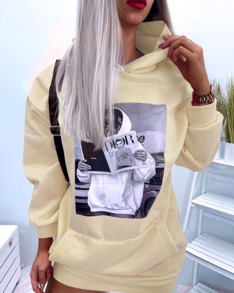 Style:Casual Type:Sweatshirt Material:97%Polyester,3%Spandex Neckline:Hooded Sleeve Style:Long Sleeve Length:Mini Pattern Type:Graphic Decoration:Pocket Fit Type:Regular Occasion:Daily Package Include:1* Dress