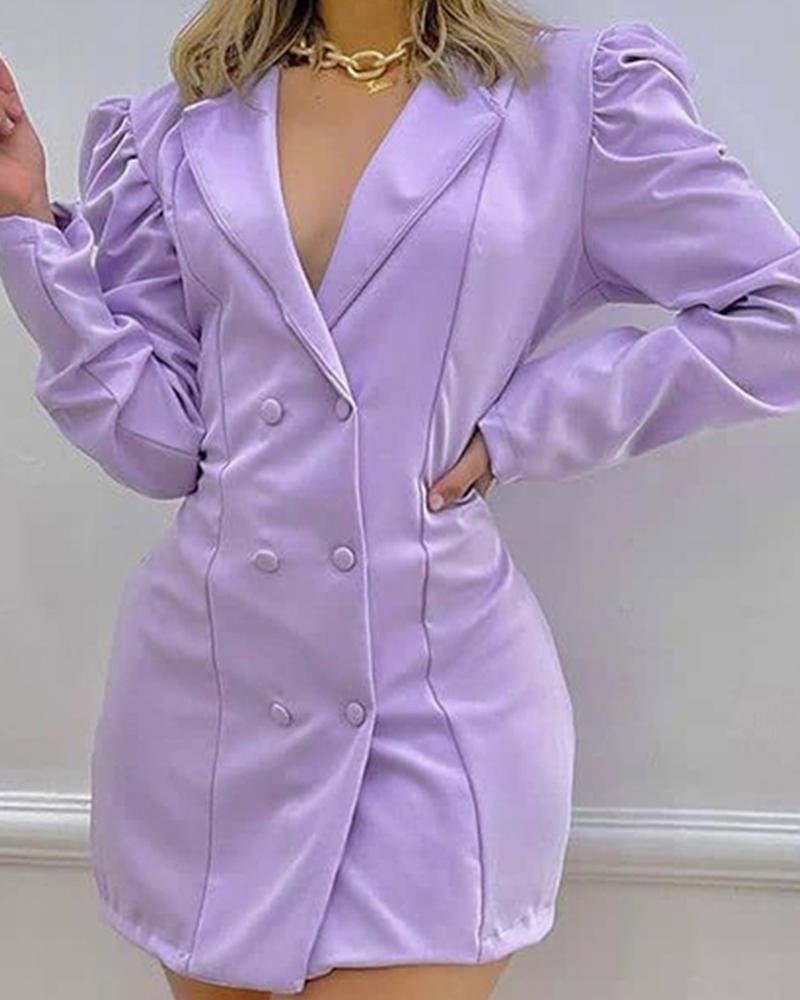 Notched Collar Puff Sleeve Double Breasted Bodycon Dress