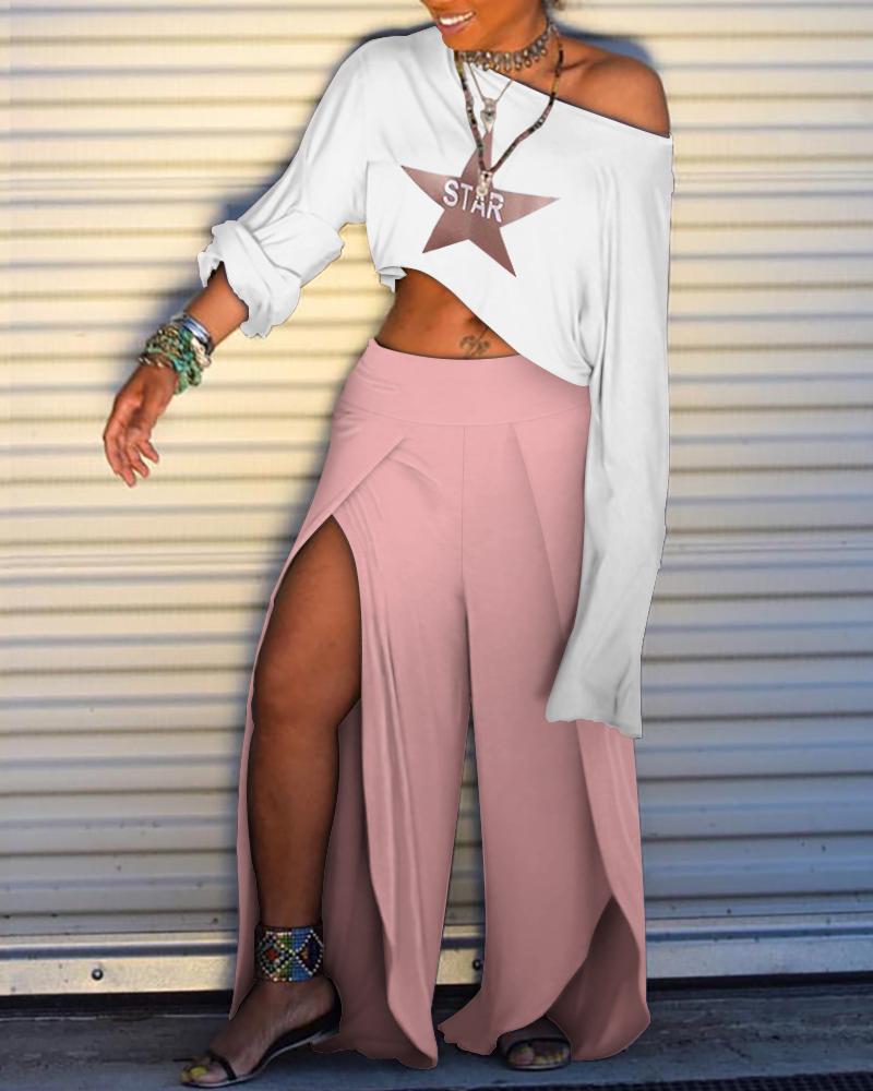 Star Print Long Sleeve T-shirt & Slit Pant Sets