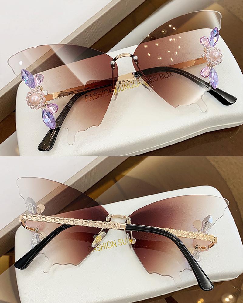 1Pair Crystal Floral Pattern Butterfly Wings Shaped Sunglasses