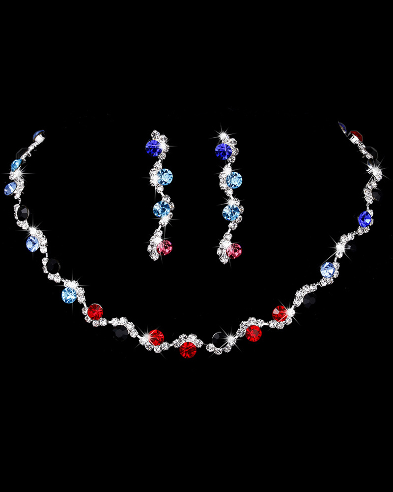 Style:Chic,Glamorous Type:Jewellery Set Material:Rhinestone Pattern Type:Geometric Occasion:Evening,Party,Wedding Guest Package Include:2PCS Jewelry Set