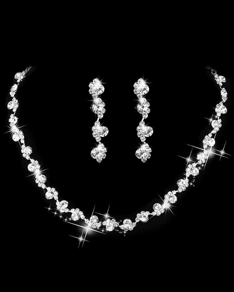 Style:Chic,Glamorous Type:Jewellery Set Material:Rhinestone Pattern Type:Geometric Occasion:Evening,Party,Wedding Guest Package Include:2PCS Jewelry Set