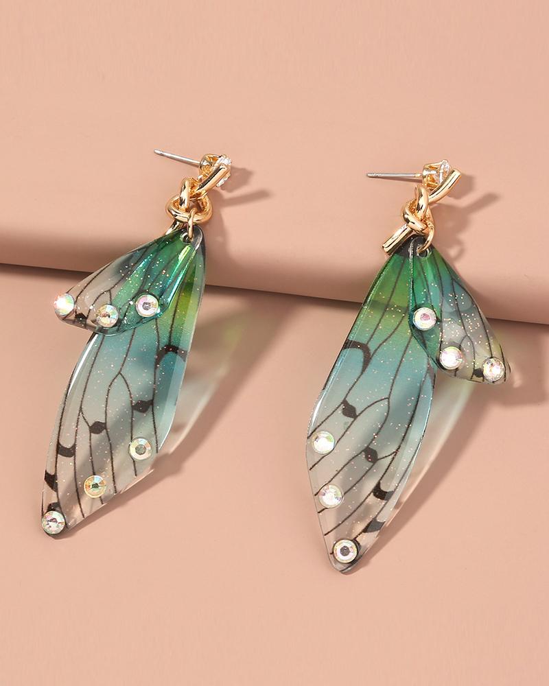 Style:Chic,Vintage Type:Drop Earrings Material:Alloy,Resin Pattern Type:Butterfly Decoration:Rhinestone Occasion:Daily,Vacation Package Include:1 Pair of Earrings