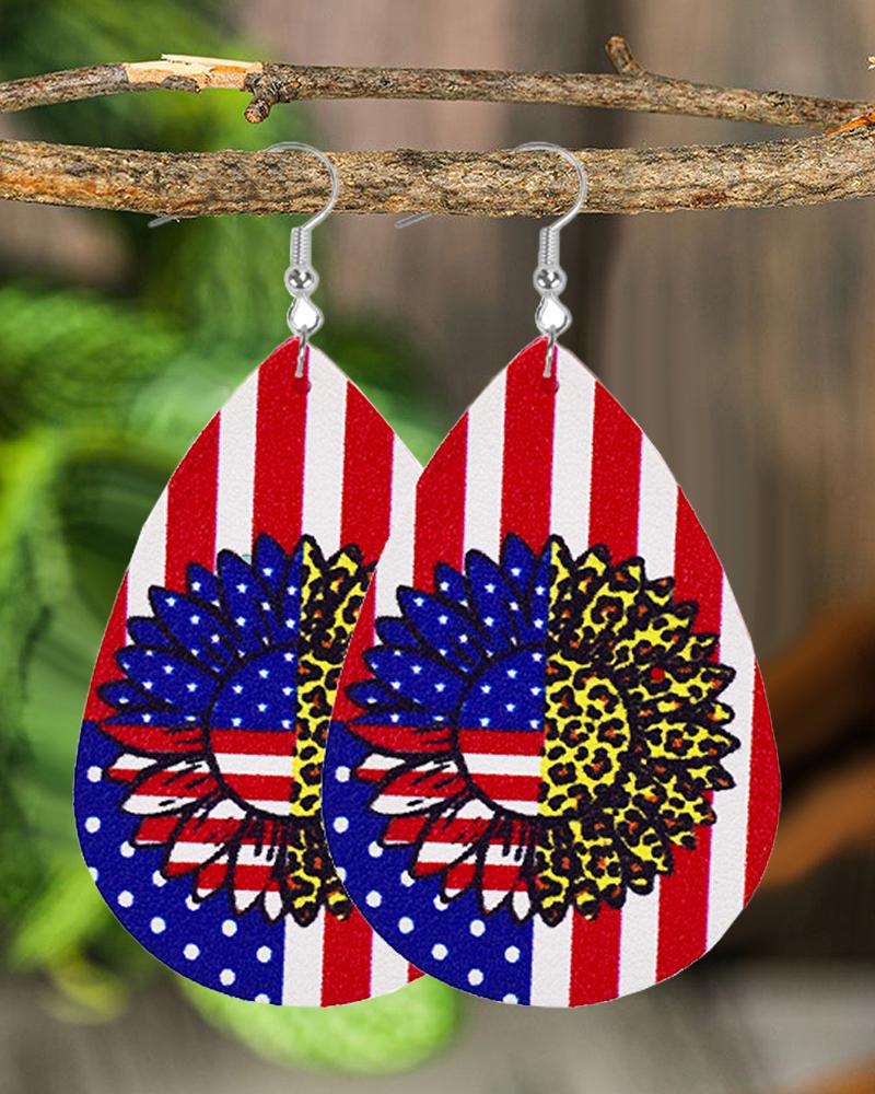 1Pair Independence Day American Flag Leopard Sunflower Waterdrop Hook Earrings