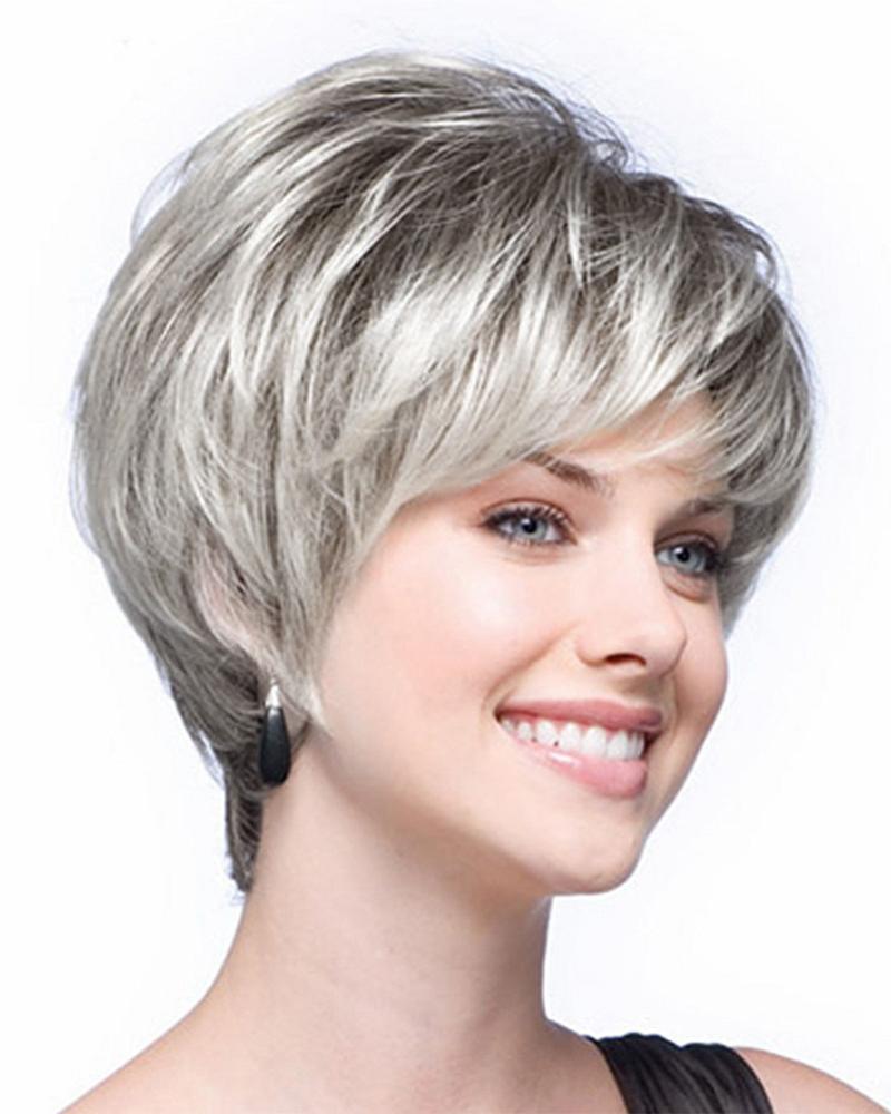 Short Layered Pixie Cut Wig Natural Looking Synthetic Wigs Older Women Mommy Old Lady Wigs