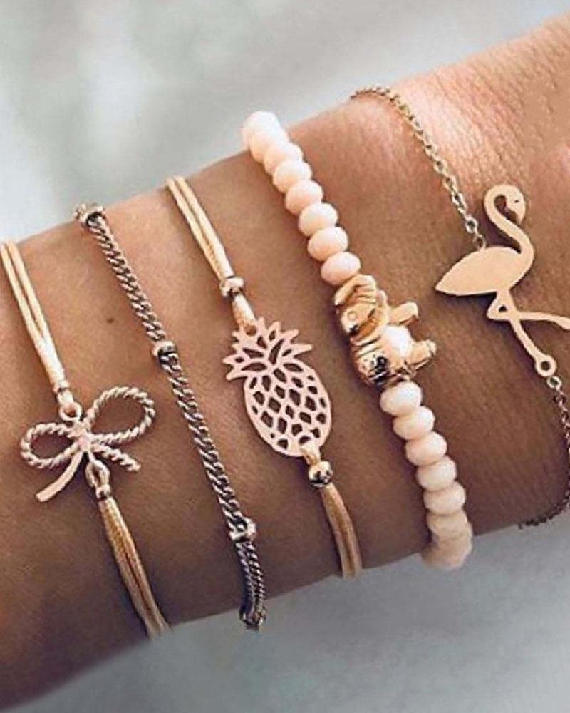 5PCS/Set Flamingo Hollow Out Pineapple Bowknot Bracelets