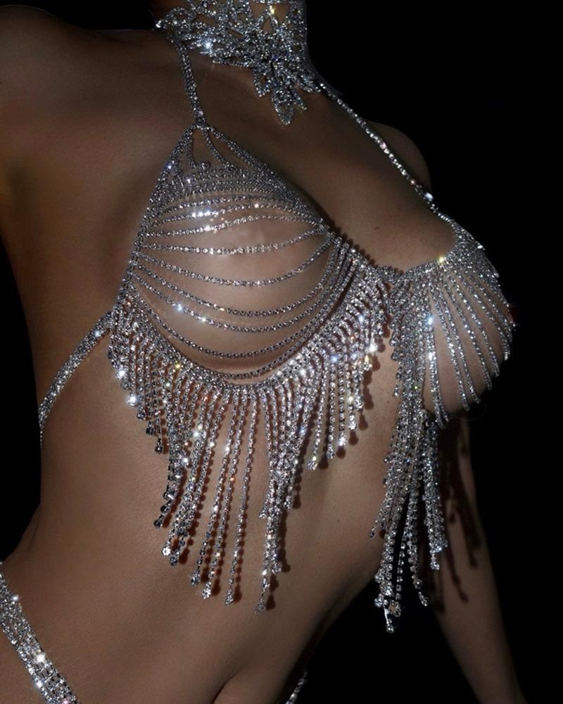Style:Sexy,Glamorous Type:Bodychain Material:Alloy Pattern Type:Plain Decoration:Cutout,Rhinestone,Tassel Occasion:Party Package Include:1*Bodychain