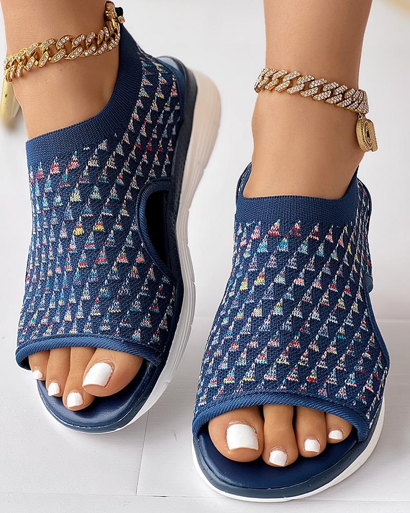 Style:Casual Type:Flat Sandals Pattern Type:Geometric Occasion:Daily Toe:Peep Toe Heel Height:Flat Package Include:1*Sandals