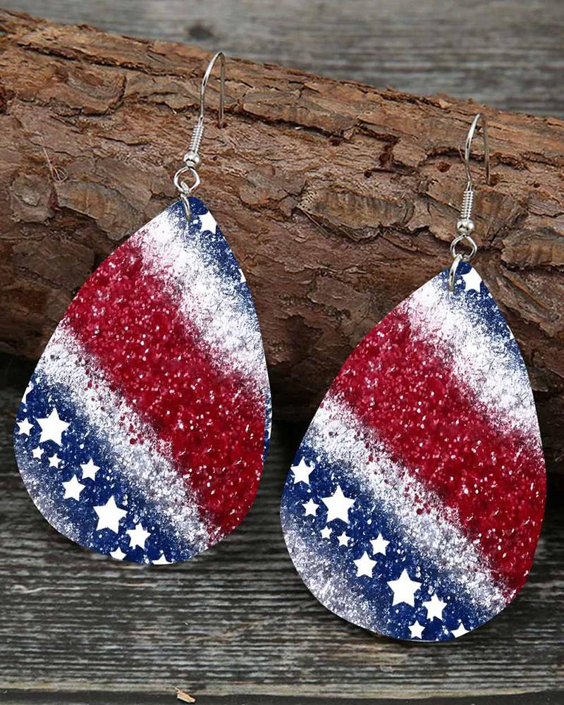 1pc Denim Look Print Waterdrop Shaped Dangle Hook Earrings