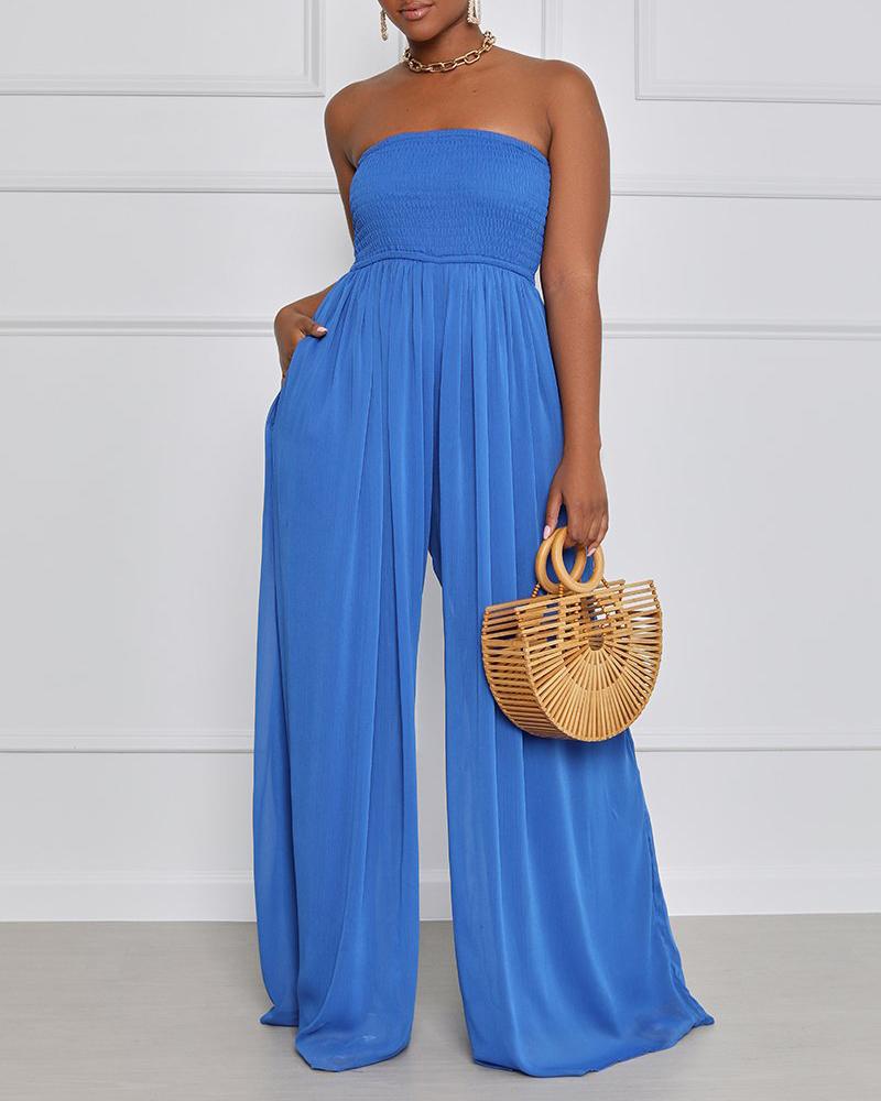 Style:Casual,Chic Type:Jumpsuit Material:Polyester Neckline:Bandeau Sleeve Style:Sleeveless Length:Long Pattern Type:Plain Decoration:Ruched Fit Type:Regular Occasion:Daily Package Include:1*Jumpsuit Fabric Elasticity:Slight Stretch Sheer:No Care Instructions:Machine wash or professional dry clean Waist Line:High Waist