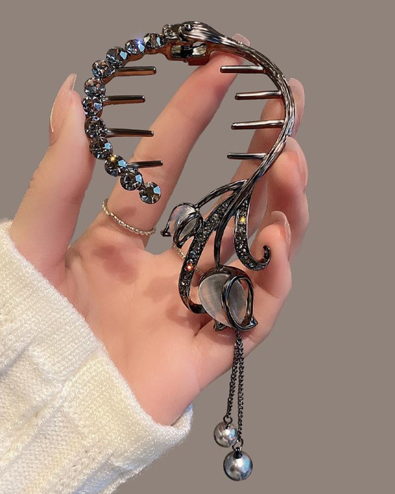 1pc Rhinestone Tulip Pearls Tassel Design Hair Clip