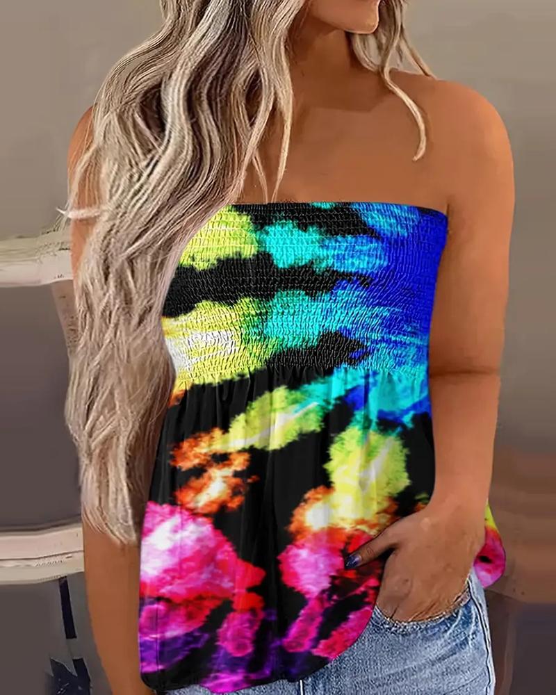 Style:Chic Type:Tank Material:Polyester Neckline:Bandeau Sleeve Style:Sleeveless Length:Regular Pattern Type:Tie Dye Decoration:Ruched,Shirred Fit Type:Regular Occasion:Daily,Vacation Package Include:1*Top Fabric Elasticity:Slight Stretch Sheer:No Care Instructions:Machine wash or professional dry clean