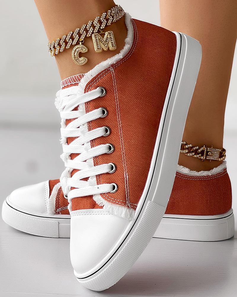 Raw Hem Lace-up Canvas Sneakers