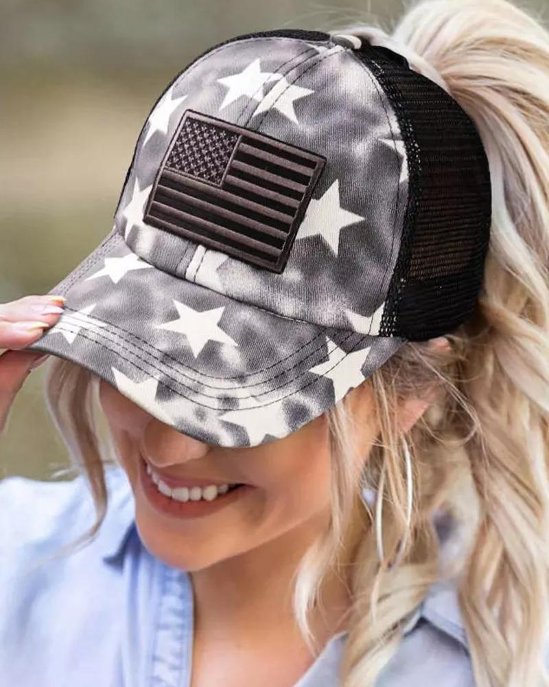 American Flag Star Tie Dye Mesh Splicing Baseball Cap