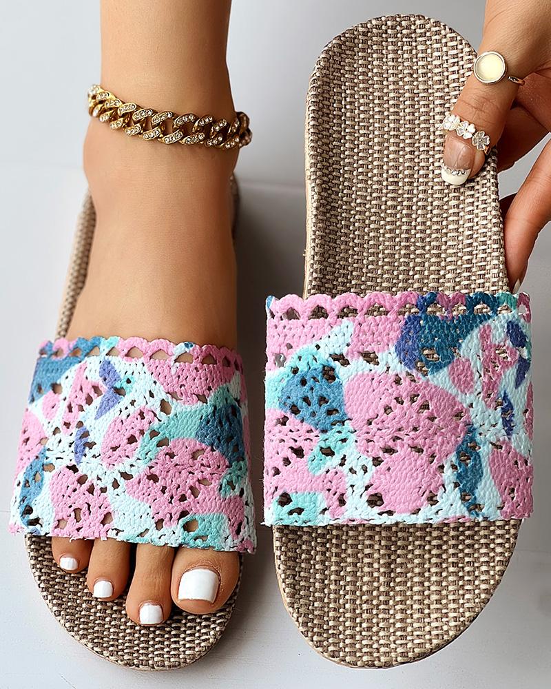Tie Dye Crochet Wide Strap Linen Slippers