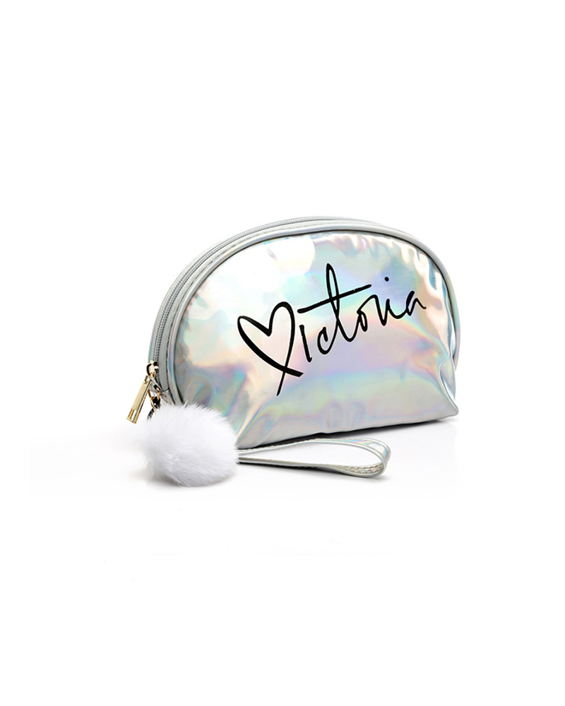 Letter Print Laser Pom Pom Makeup Bag