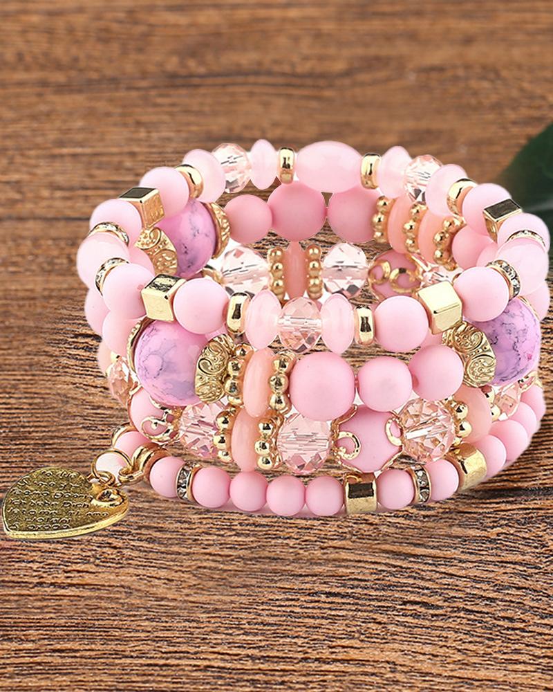 1pc Bohemian Beaded Crystal Stone Heart Pattern Multi-layer Bracelet