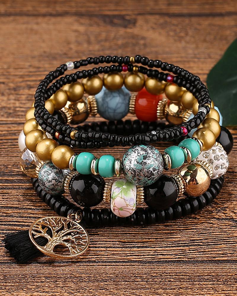 4PCS/Set Floral Leaf Pattern Tassel Design Beaded Bracelets