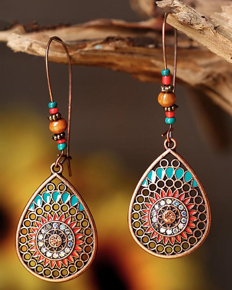 1Pair Bohemian Hollow Out Beaded Tear Drop Earrings