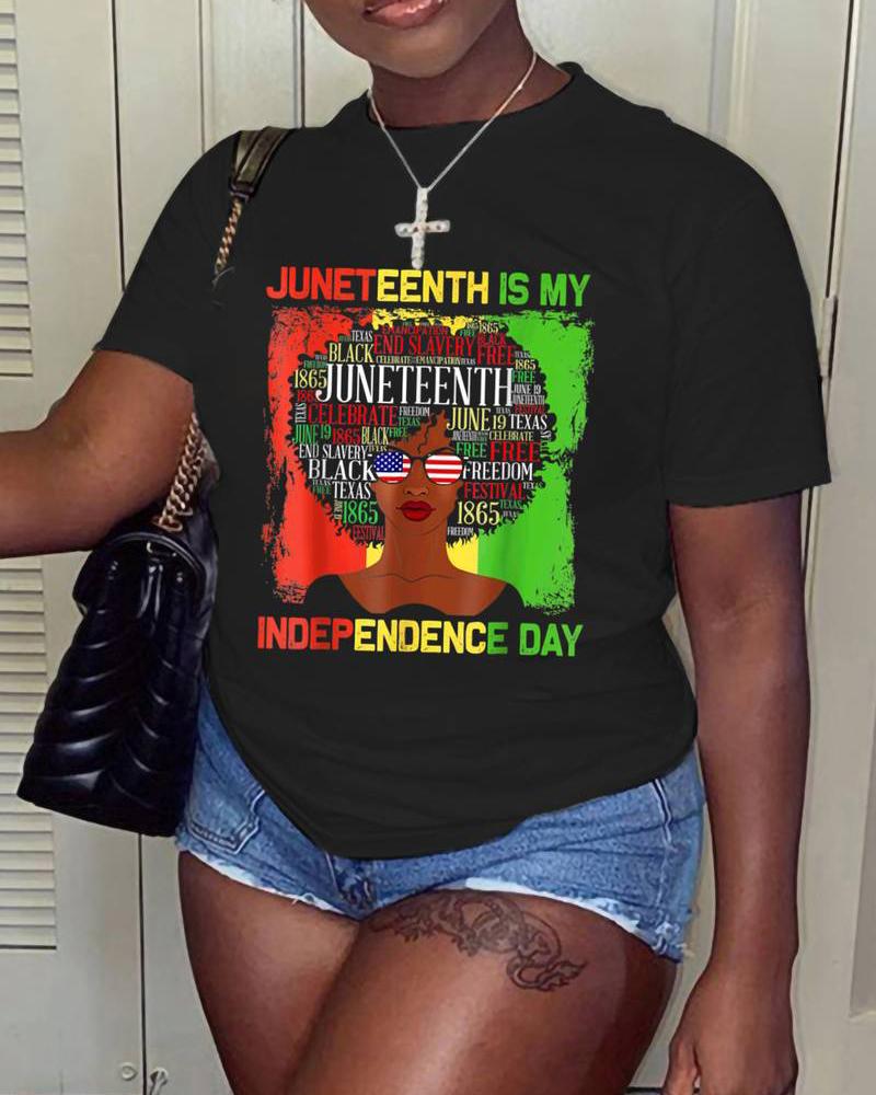 Juneteenth Is My Independence Day Figure Letter Print T-shirt