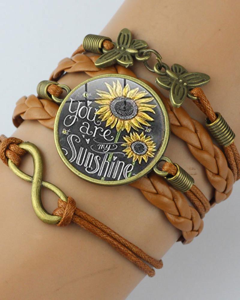 1pc Sunflower You Are My Sunshine Butterfly Multi-Layer Braided Bracelet