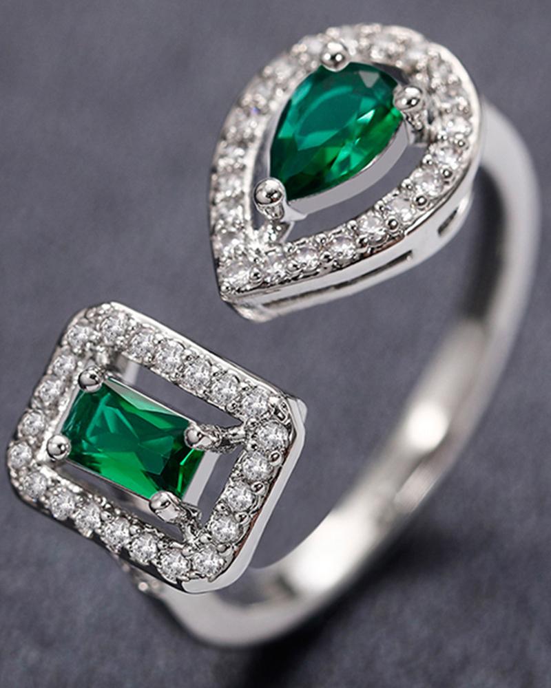 1pc Water Drop Square Shaped Zircon Wedding Opening Ring