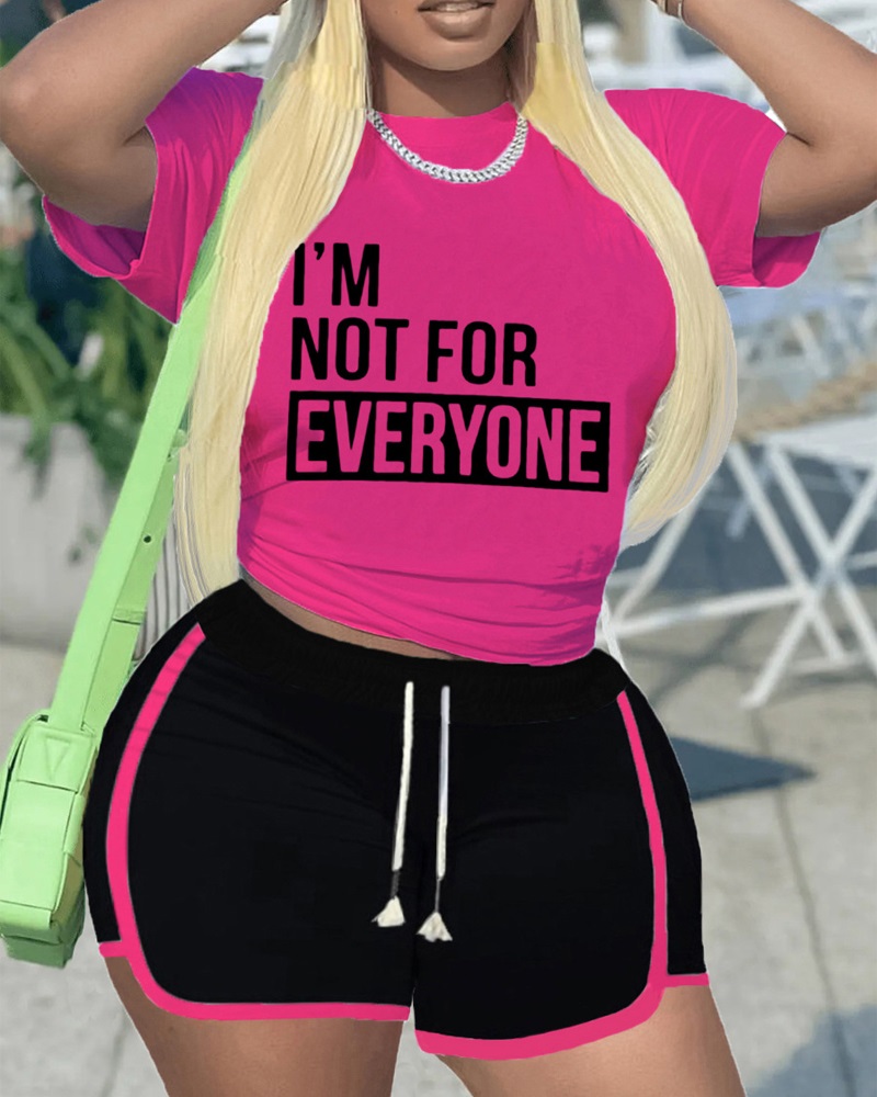 Style:Casual Type:Shorts Set Material:Polyester Neckline:O-neck Sleeve Style:Short Sleeve Length:Above Knee Pattern Type:Letter,Contrast Paneled Decoration:Drawstring Fit Type:Regular Occasion:Daily Package Include:1*Shorts Set Fabric Elasticity:Slight Stretch Sheer:No Care Instructions:Machine wash or professional dry clean
