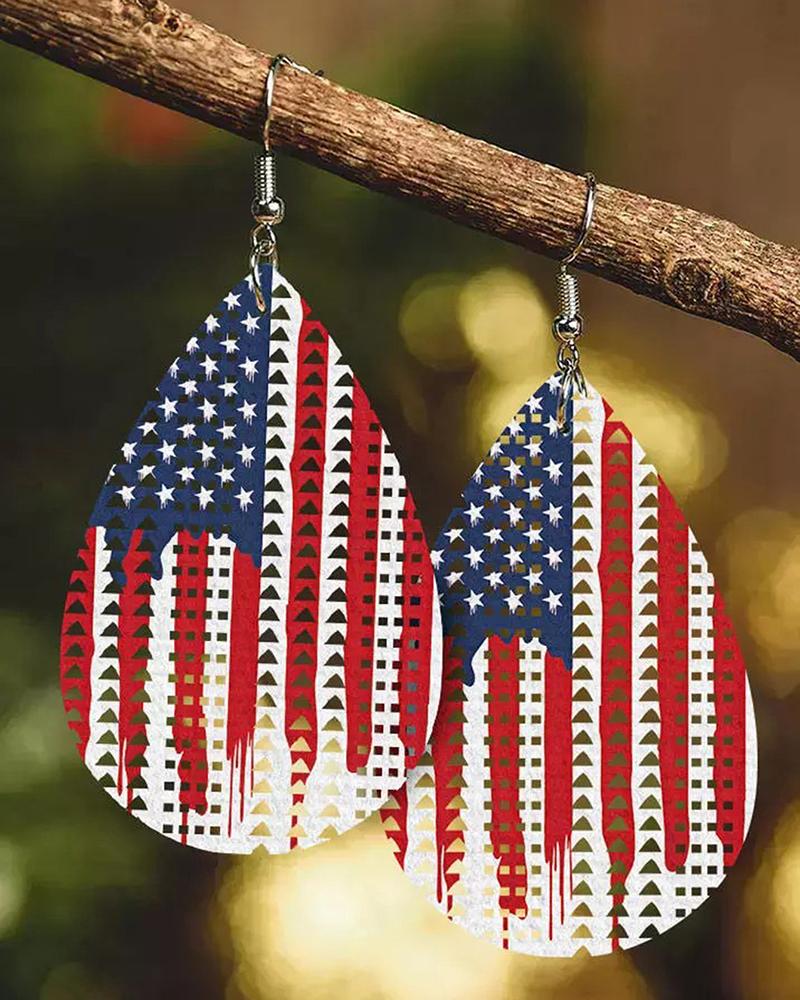 1Pair Independence Day Flag Hollow Out Hook Earrings