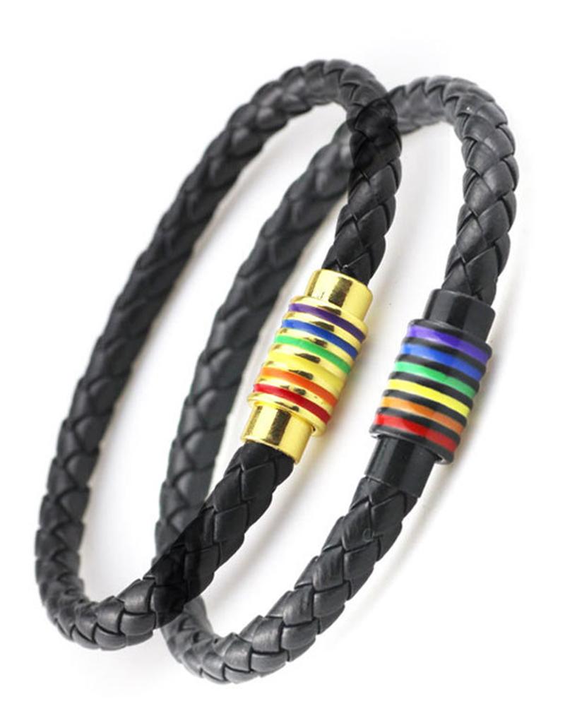 1pc Rainbow Stripe Braided Magnet Bracelet