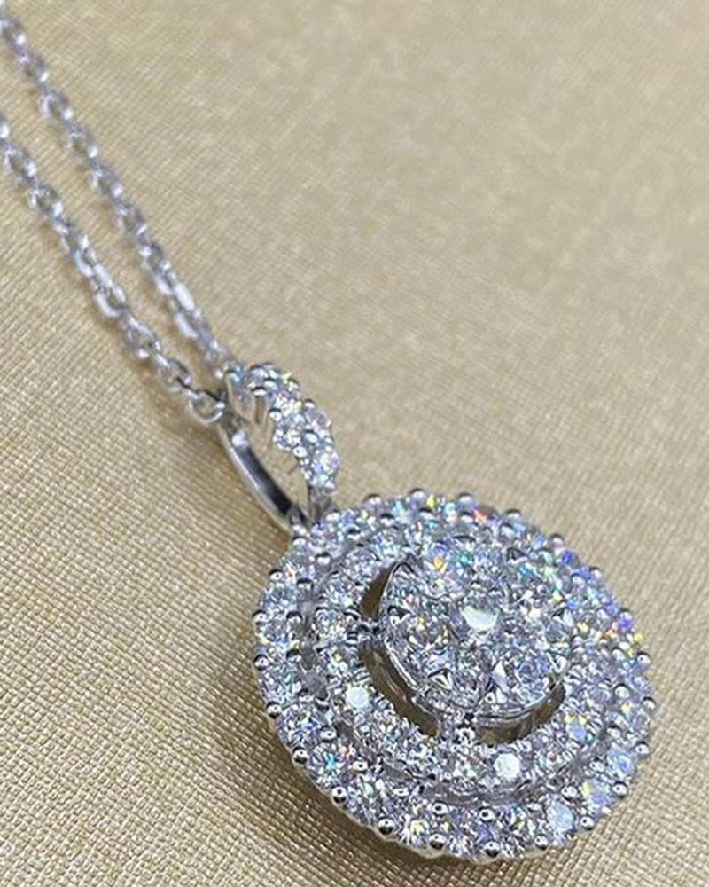 1pc Round Plate Zircon Pendant Necklace Luxury Jewelry Engagement Wedding Party Gift