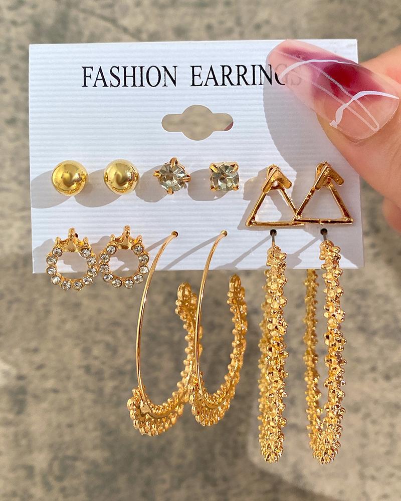 Style:Chic Type:Earrings,Hoop Earrings Material:Alloy Pattern Type:Geometric,Graphic Occasion:Daily Package Include:6Pairs Earrings Set