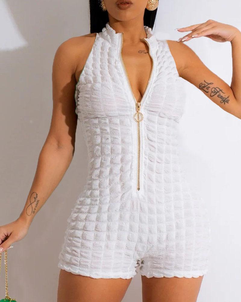 Scarf Chain Print Cutout Sleeveless Skinny Romper