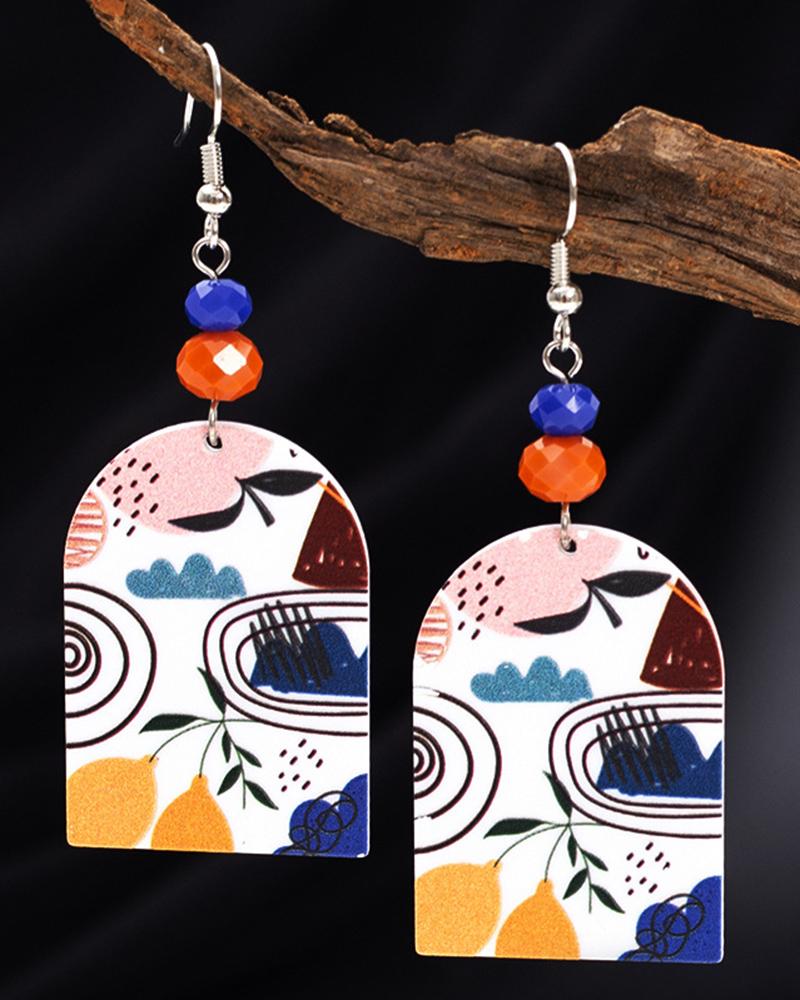 1Pair Graphic Print Geometric Drop Hook Earrings