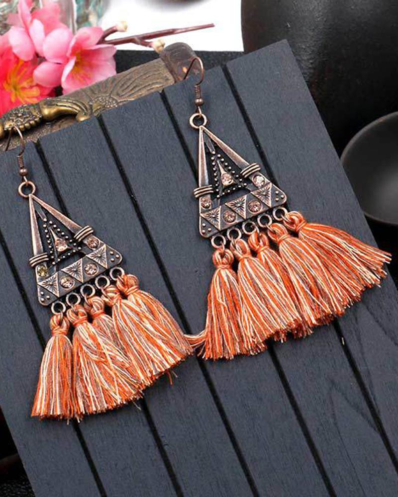 1Pair Bohemian Ethnic Style Tribal Triangle Tassel Design Hook Earrings