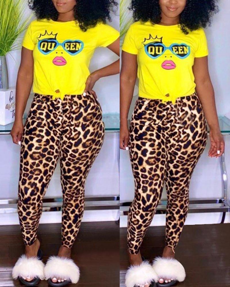 Style:Casual Type:Pants Sets Material:Polyester Neckline:O-neck Sleeve Style:Short Sleeve Length:Long Pattern Type:Graphic,Leopard,Letter Decoration:Tied Detail Fit Type:Regular Occasion:Daily Package Include:1*Pants Set Fabric Elasticity:Non-Stretch Sheer:No Care Instructions:Machine wash or professional dry clean Waist Line:High Waist