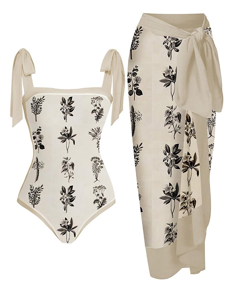 Animal Tropical Print Backless One Piece Swimsuit With Cover Up