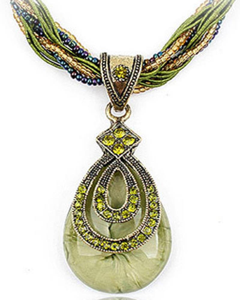 1pc Bohemian Water Drop Shaped Gem Stone Pendant Necklace