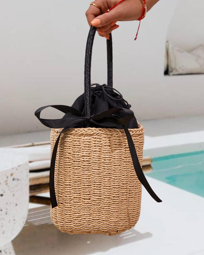 Tied Detail Top Handle Straw Bag