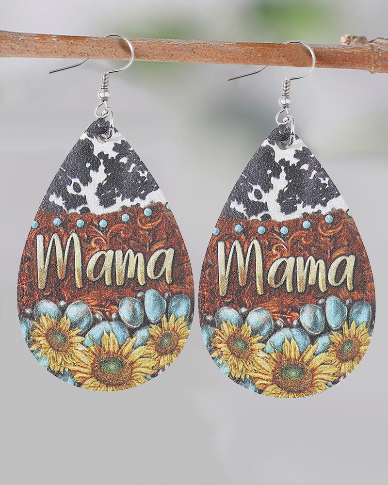 1Pair Mother's Day Mama Sunflower Print Cowboy Style Waterdrop Earrings