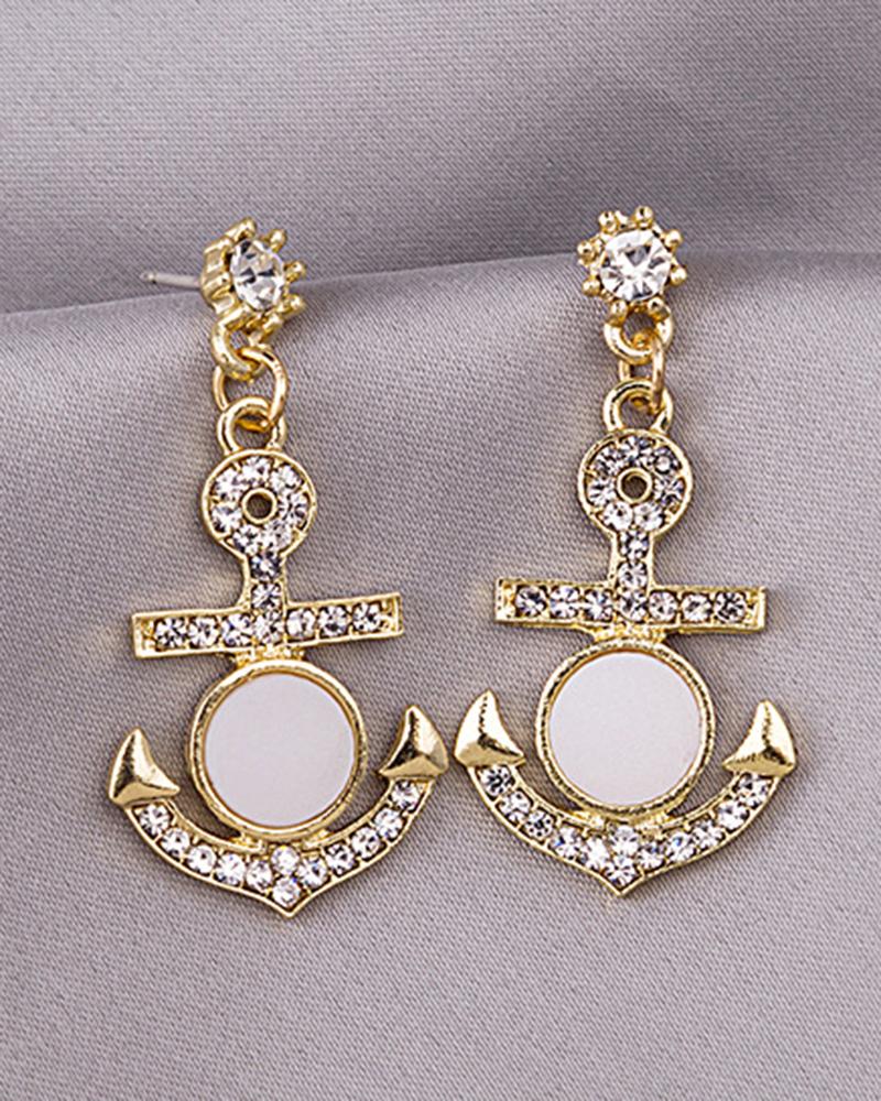 1Pair Anchor Shaped Rhinestone Drop Earrings