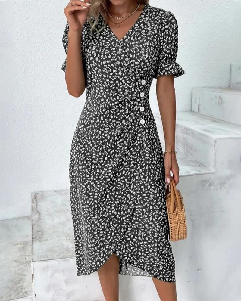 Ditsy Floral Print Side Buttoned Wrap Dress