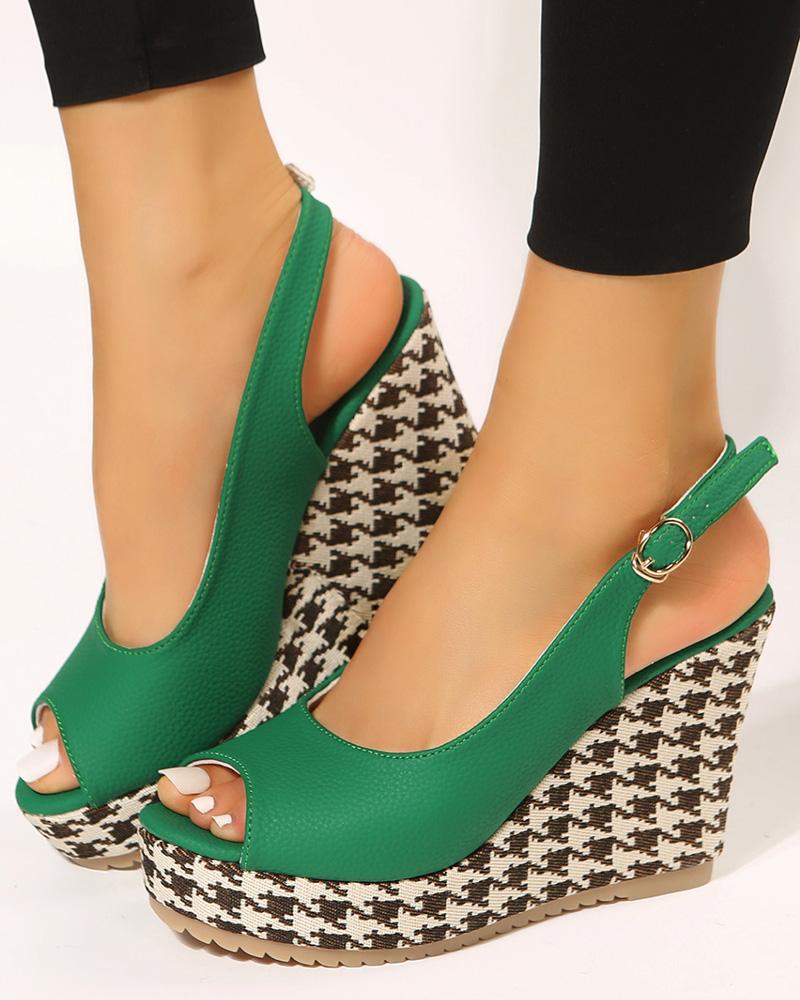 Style:Chic Type:Heeled-Sandals Pattern Type:Houndstooth Occasion:Daily Toe:Peep Toe Heel Height:High Heel Package Include:1*Heels
