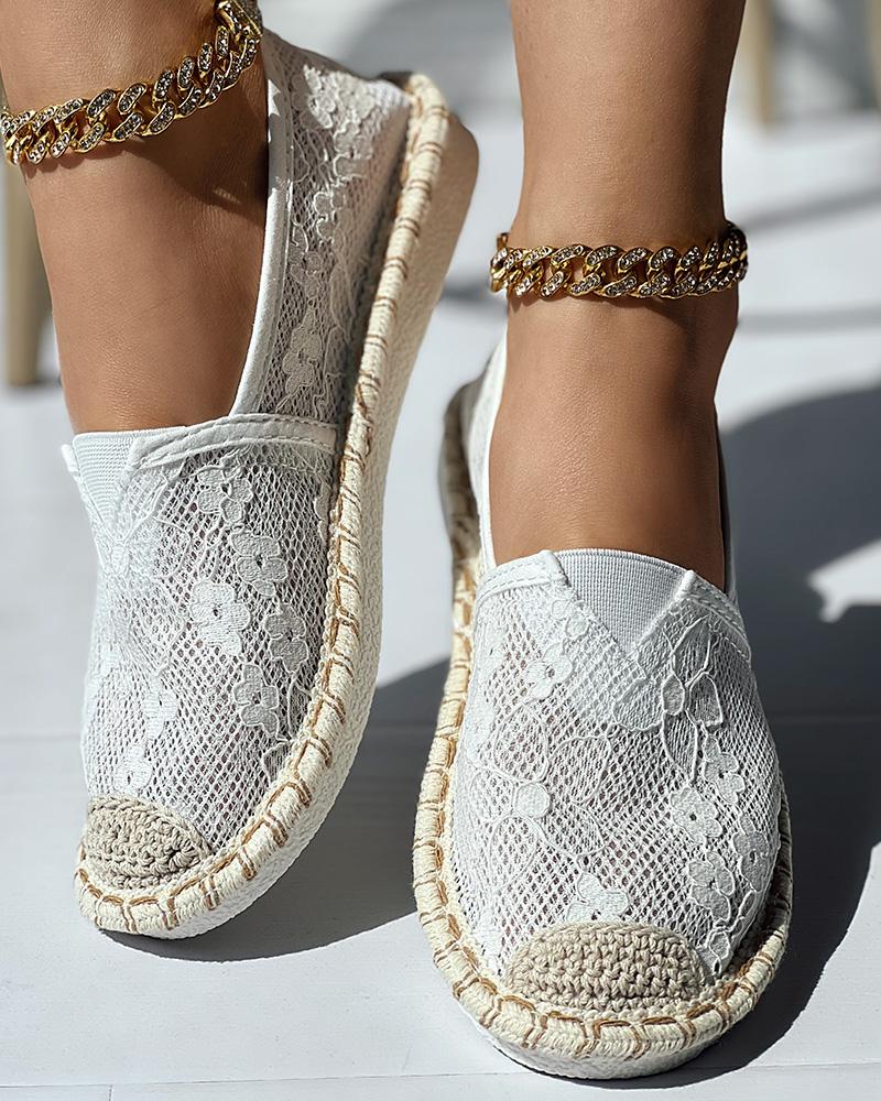 Crochet Lace Round Toe Slip-On