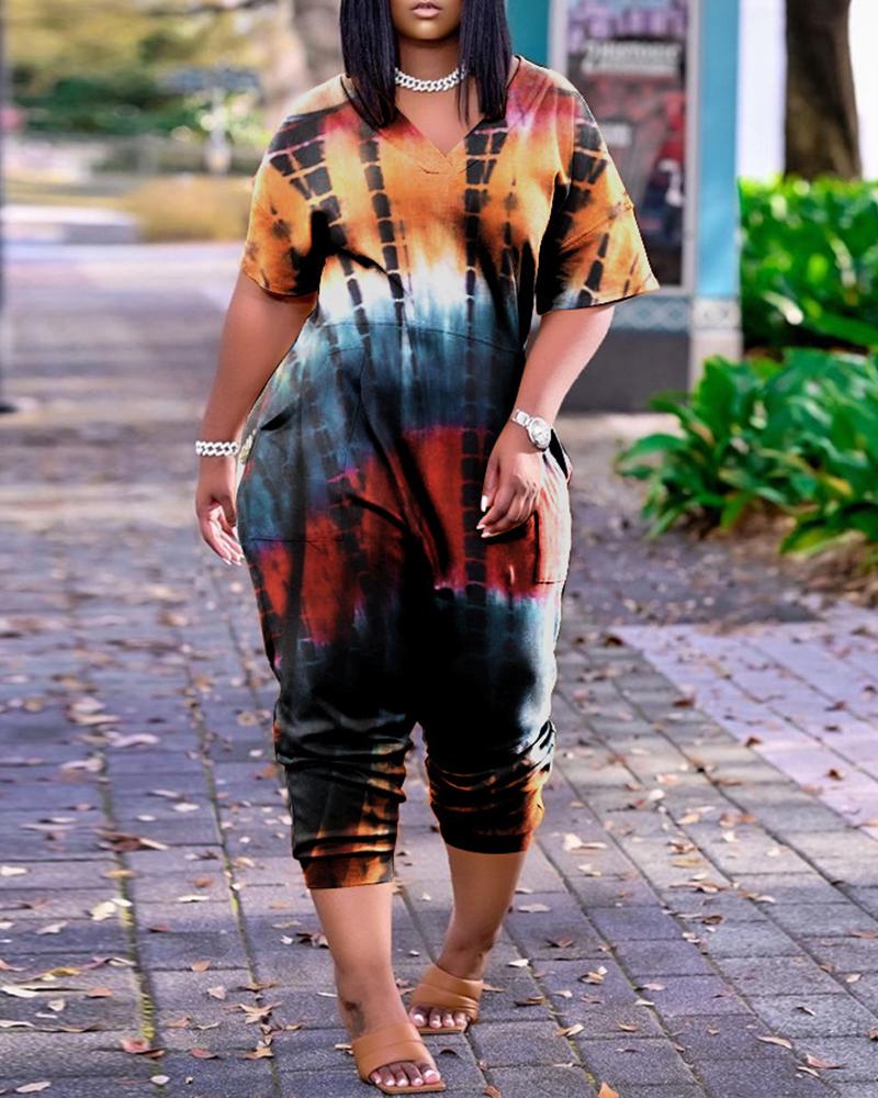 Style:Casual Type:Jumpsuit Material:Polyester Neckline:V-Neck Sleeve Style:Short Sleeve Length:Long Pattern Type:Tie Dye Decoration:Pocket Fit Type:Regular Occasion:Daily Package Include:1*Jumpsuit