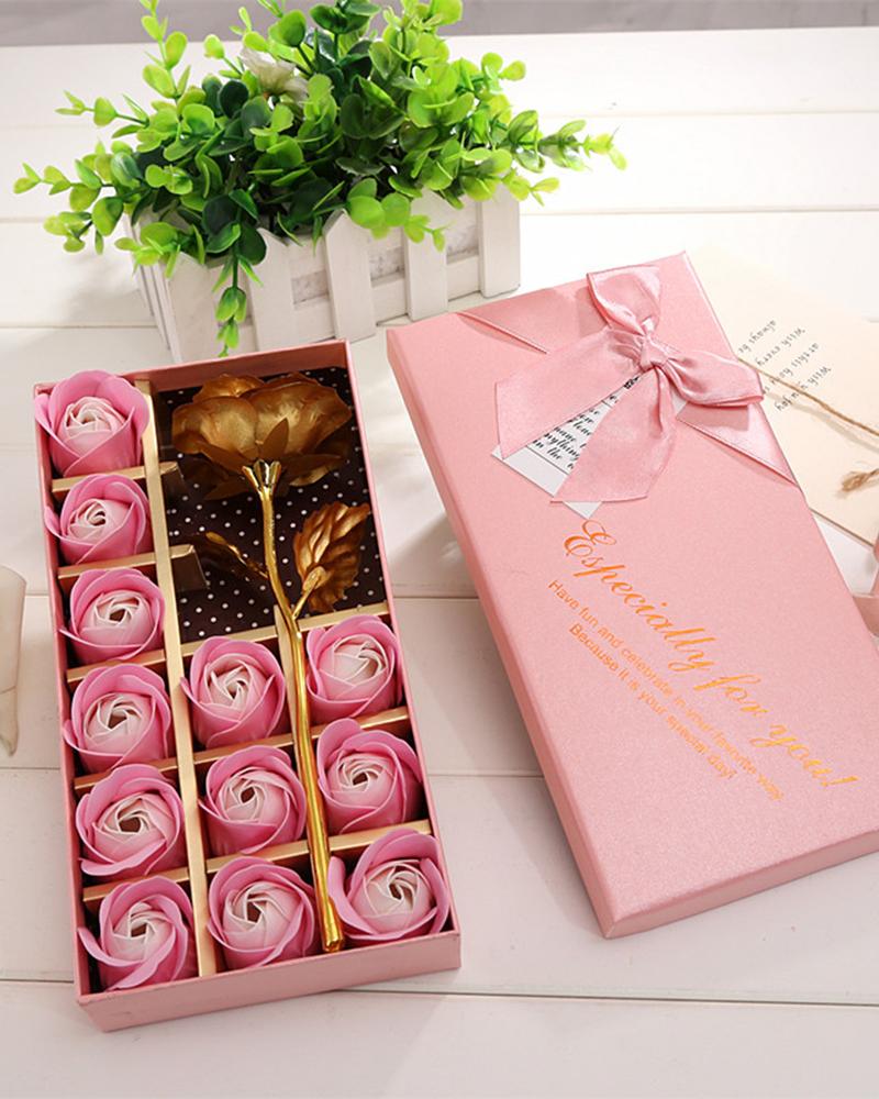 1 Pack Mother's Day Couple Gift Simulated Rose Soap Golden Foil Flower With Box