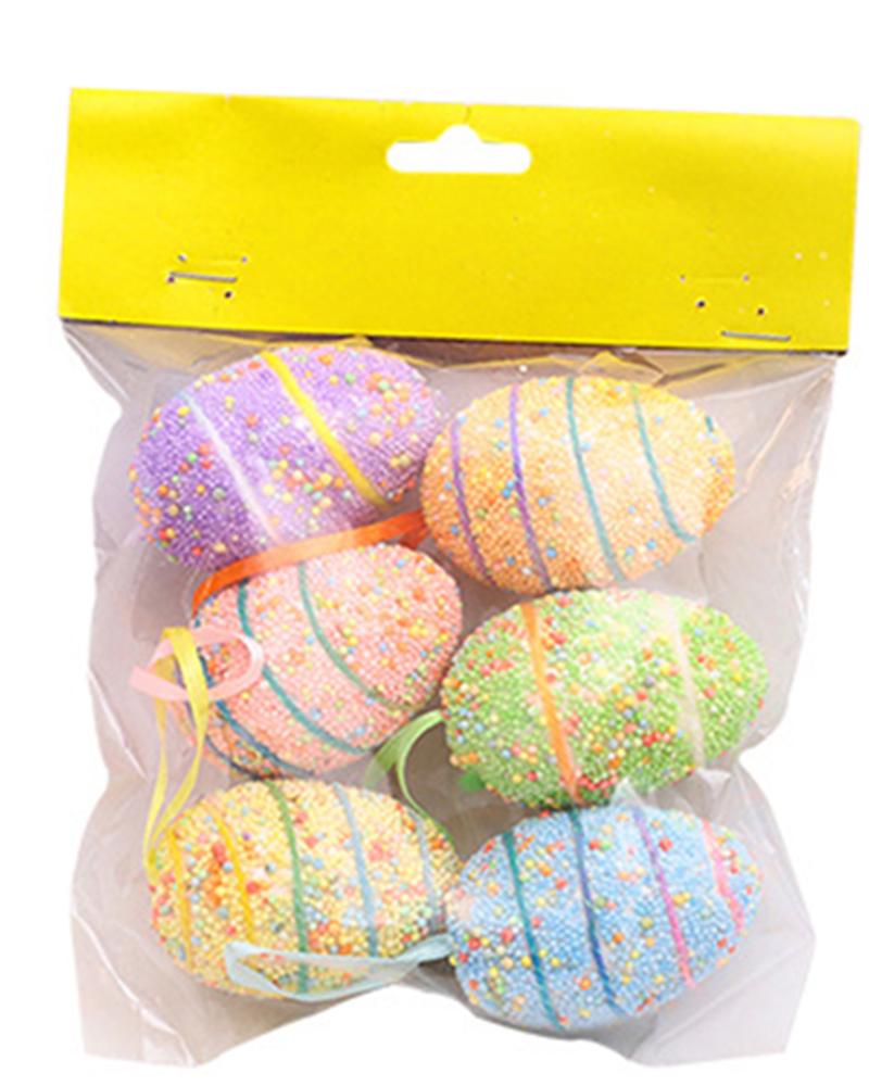 6pcs Plastic Fillable Painted Easter Eggs Hanging Decoration