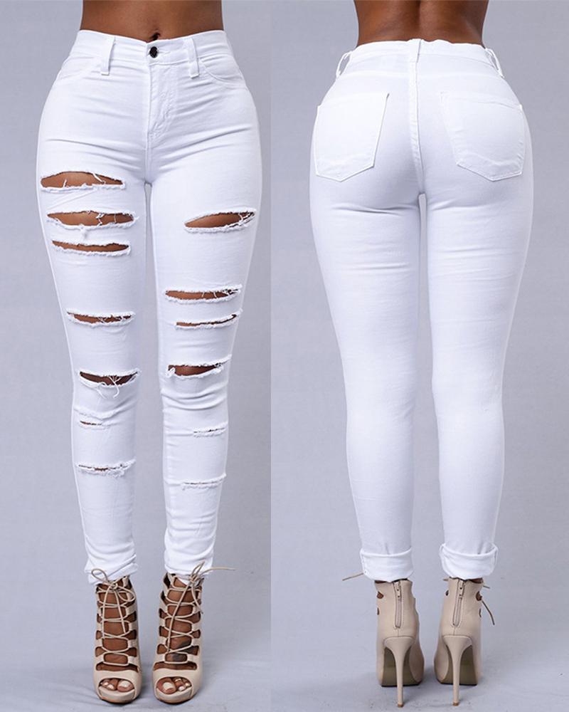 Style:Casual,Denim Type:Jeans Material:Denim Length:Long Pattern Type:Plain Decoration:Cutout,Pocket,Ripped,Zipper Fit Type:Skinny Occasion:Daily Package Include:1*Jeans Fabric Elasticity:Slight Stretch Sheer:No Care Instructions:Machine wash or professional dry clean