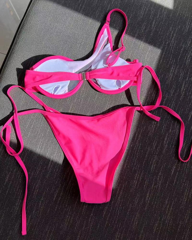 3PCS Frill Hem Tie Front Bikini Set With Cover Up Skirt